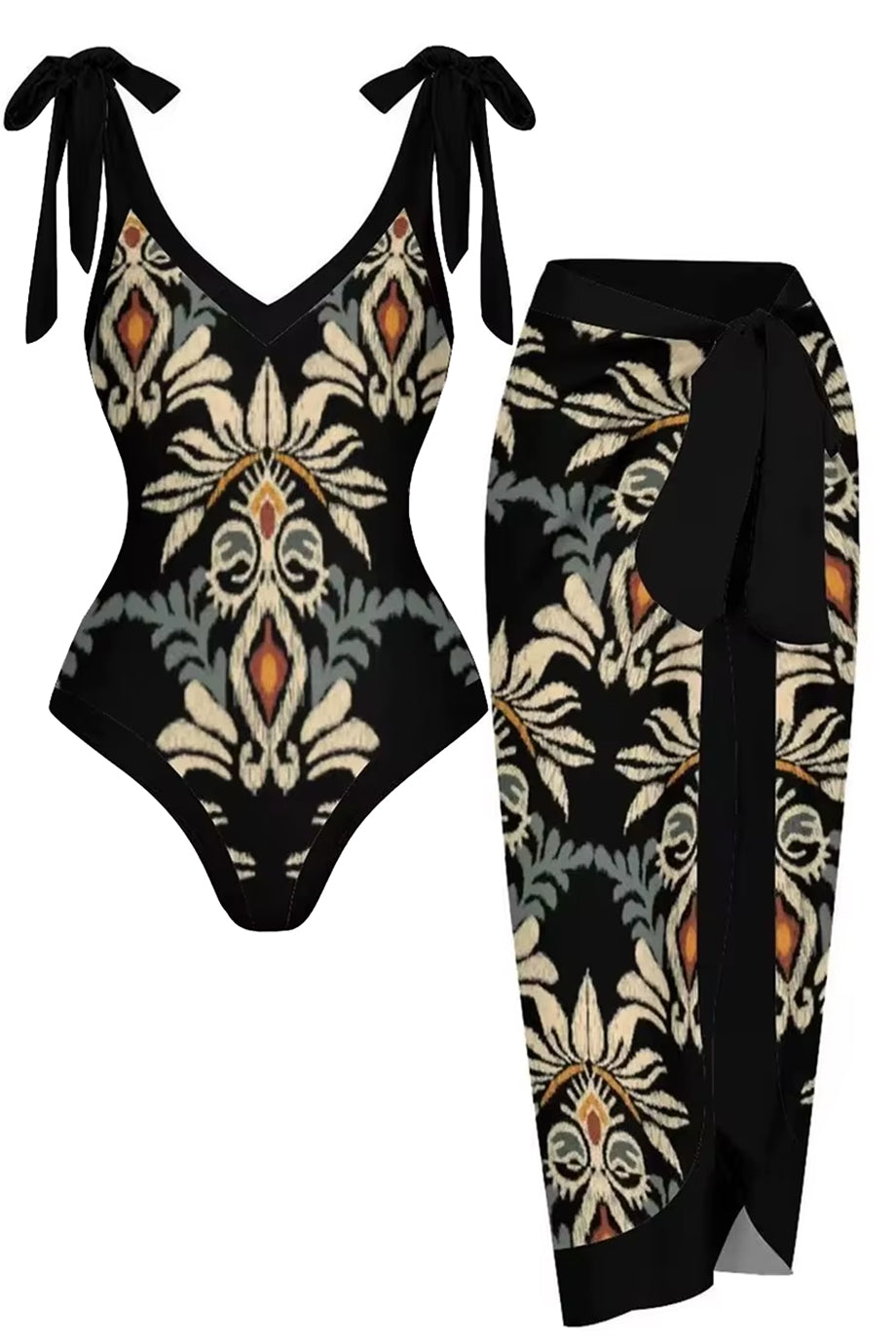 Lilium Bloom One-Piece Swimsuit and Pareo Set