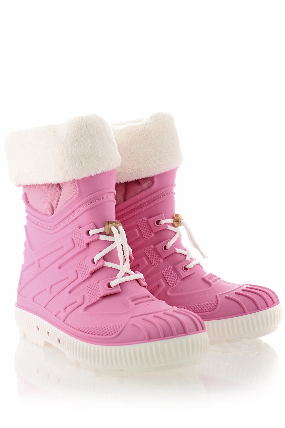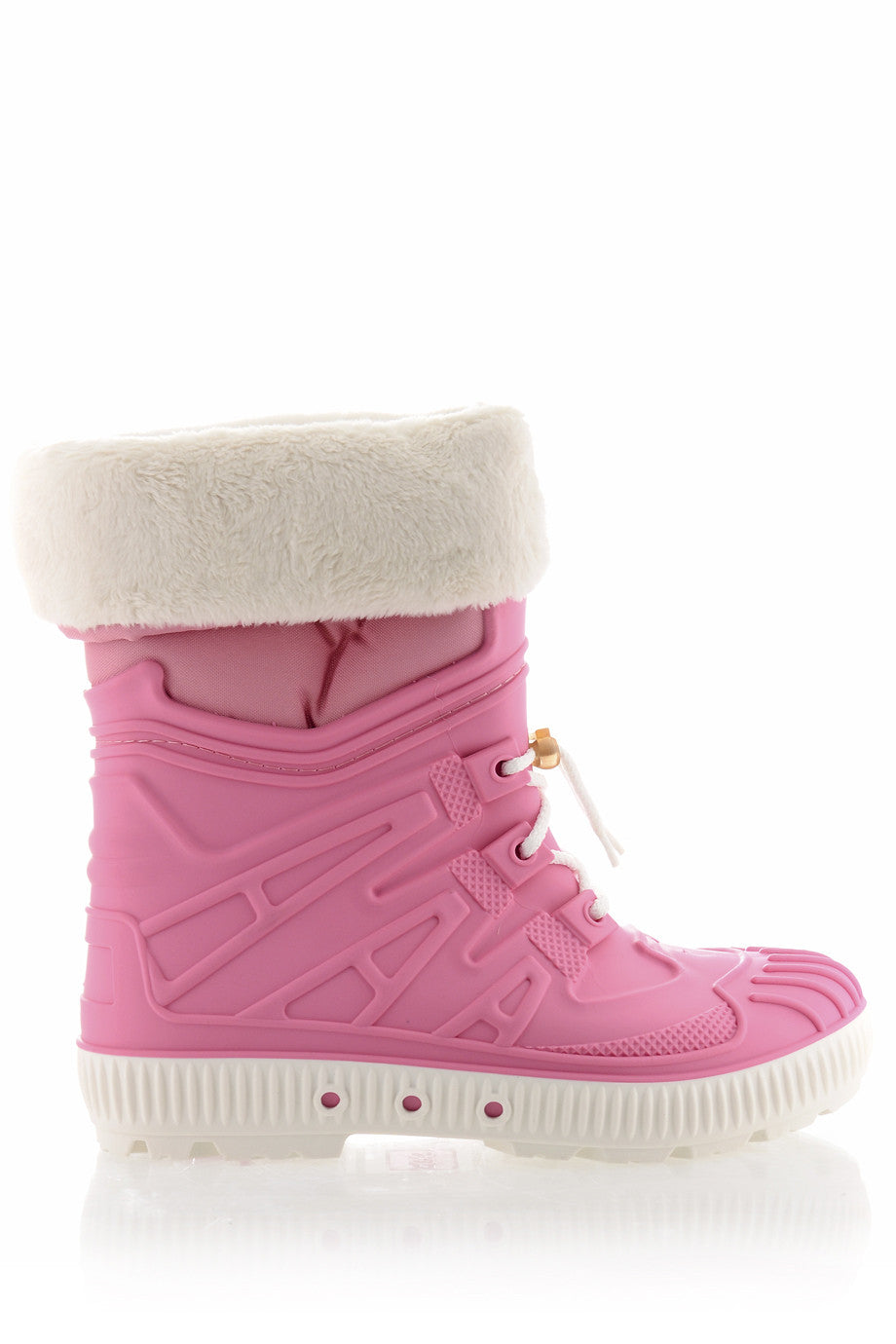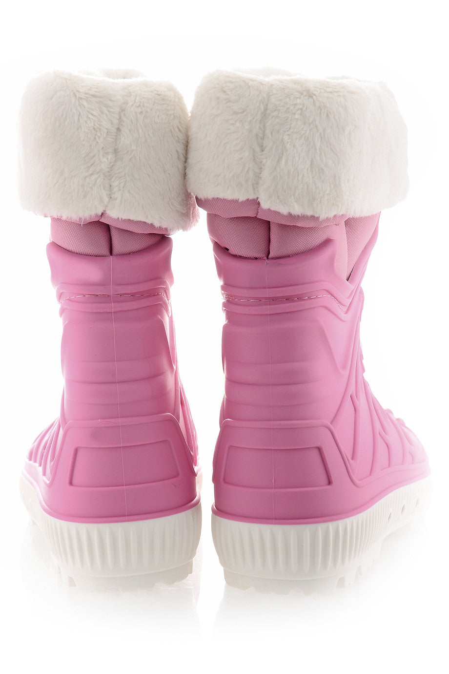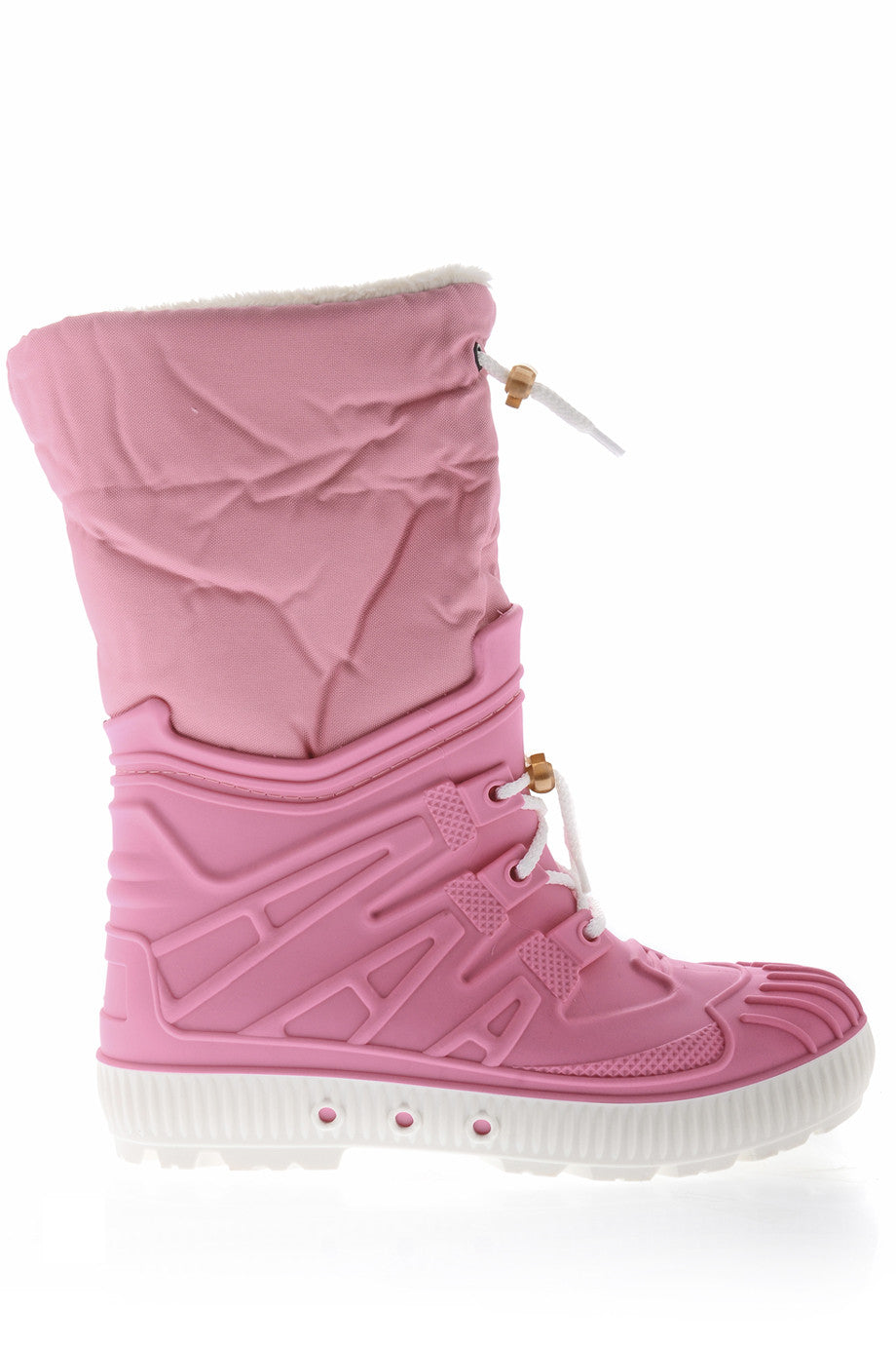 - Pink matte embossed rubber and waterproof fabric part of the boot