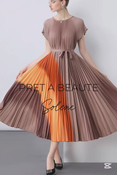 Το φόρεμα Solene ξεχωρίζει για το παιχνιδιάρικο αλλά κομψό σχέδιό του. Διαθέτει πιέτες, ζώνη στη μέση και midi μήκος που χαρίζει κίνηση και θηλυκότητα. Το χρωματικό εφέ του σε αποχρώσεις που εναλλάσσονται δημιουργεί μία δυναμική αλλά ισορροπημένη εμφάνιση. Μπορεί να φορεθεί και χωρίς τη ζώνη για ένα πιο αέρινο look.