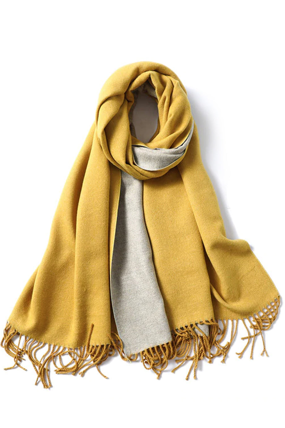 Malenia Γκρι Ανοικτό Μουσταρδί Δίχρωμη Εσάρπα Κασκόλ