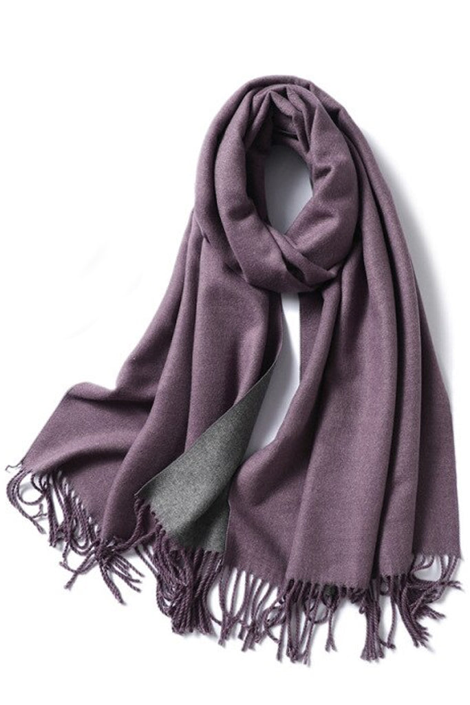 Υπέροχη εσάρπα από τον οίκο Perini. Η εσάρπα Malenia έχει δύο χρώματα, ανοικτό γκρι και μουσταρδί και τελείωμα με κρόσσια και στις δύο άκρες της.