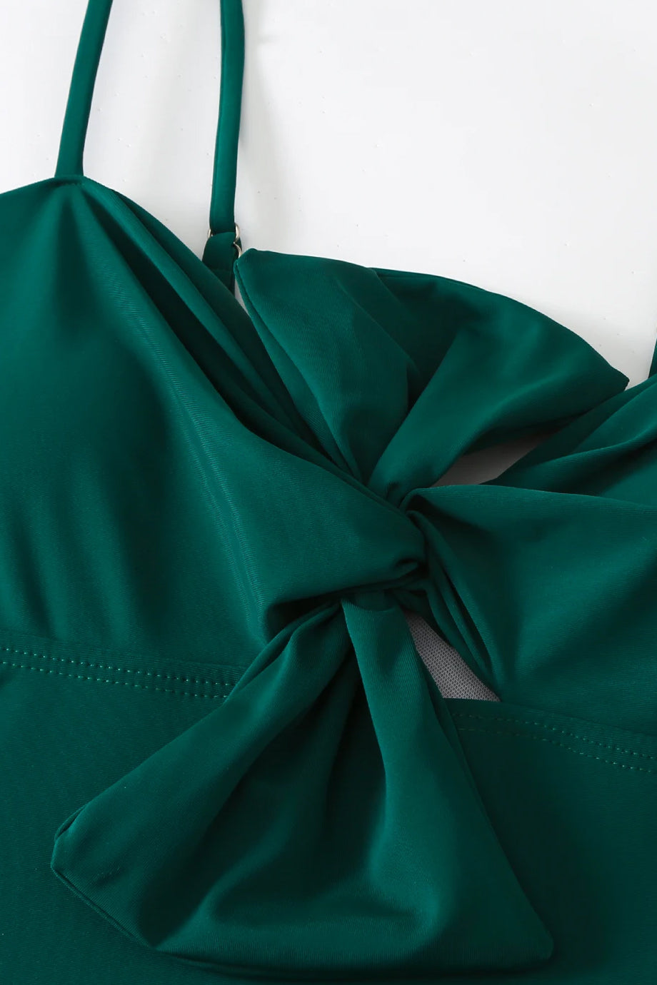 Το Esmerina είναι ένα κομψό κομμάτι που αποπνέει αυτοπεποίθηση και φινέτσα. Το λαμπερό πράσινο χρώμα τονίζει κάθε τόνο επιδερμίδας, ενώ ο εντυπωσιακός φιόγκος στο μπούστο προσθέτει μία couture αίσθηση. Οι λεπτές ρυθμιζόμενες τιράντες εξασφαλίζουν άνεση και εφαρμογή, ενώ μπορεί να συνδυαστεί ιδανικά με παρεό ή ψηλόμεση φούστα για πιο θηλυκές εμφανίσεις.